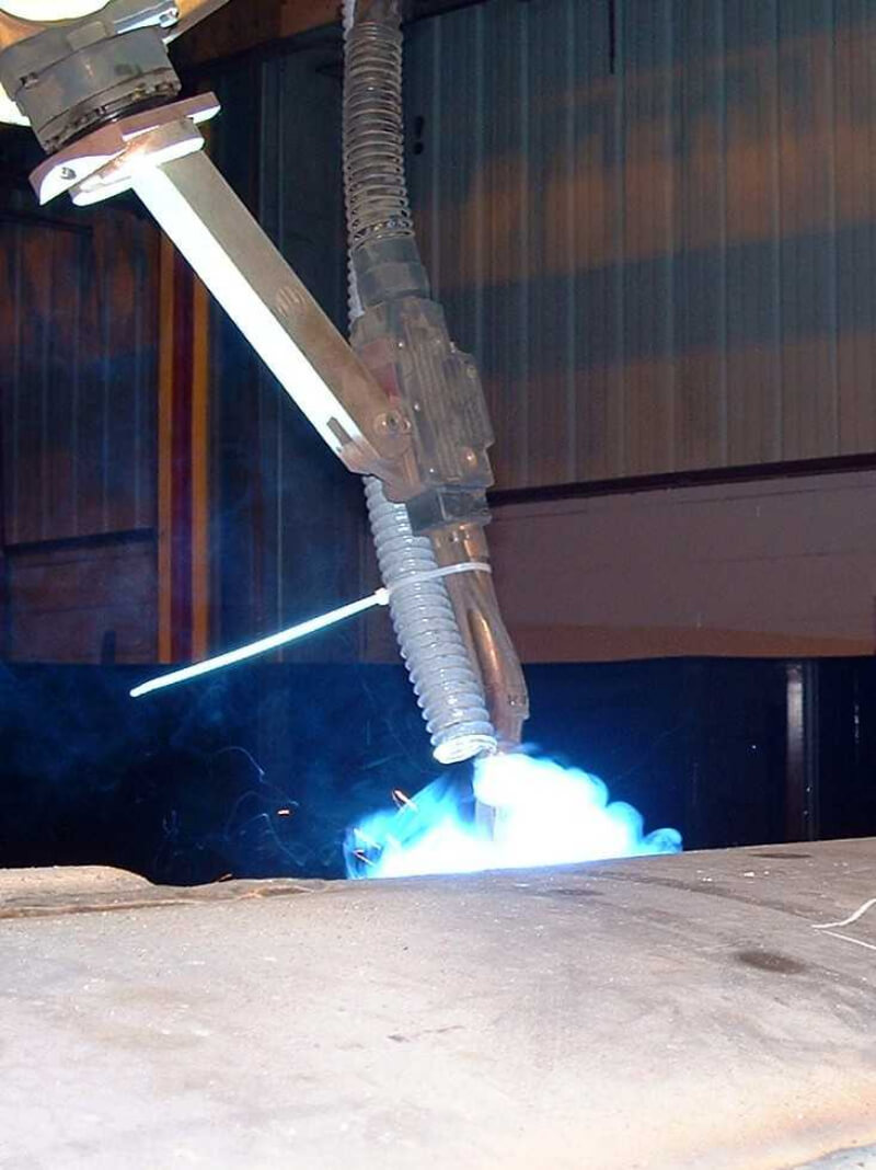 Because the suction is integrated at the torch, this method captures the fumes at the exact point of generation, requiring minimal airflow compared to other systems. That means smaller equipment, lower energy costs, and easier installation.