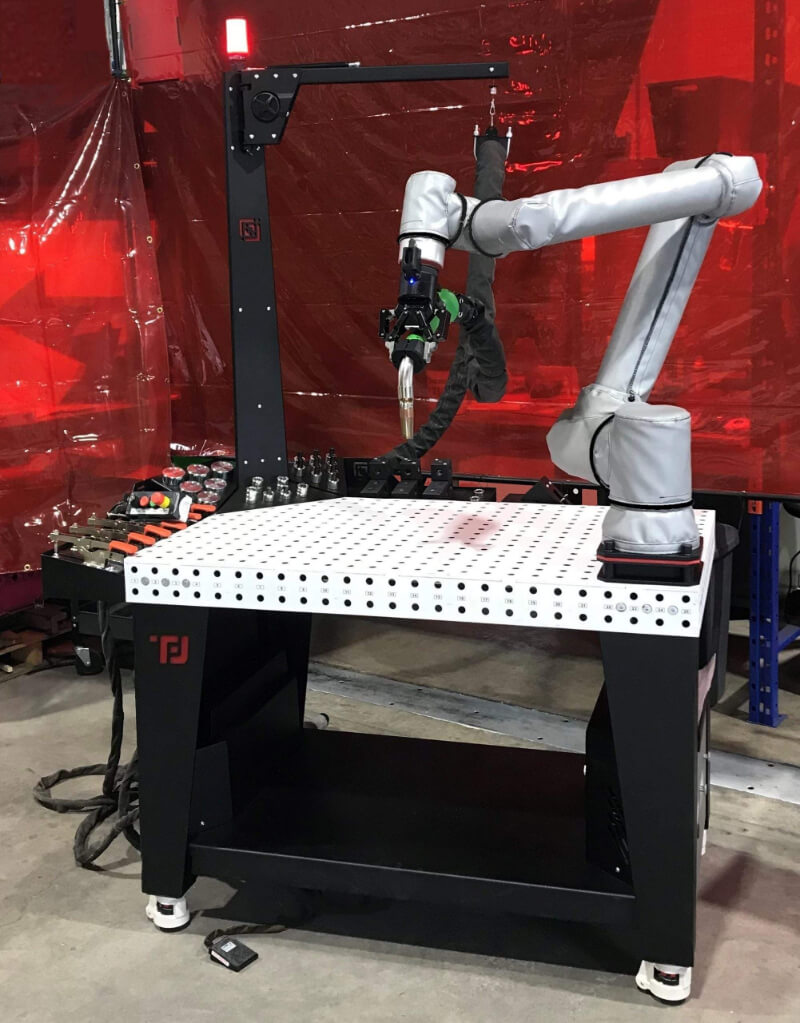 This option only works if the robot welds in a very small, predictable space—for example, an automated welding setup where a pipe or tube rotates (commonly referred to as a welding lathe or rotary welding fixture), while the torch stays stationary.