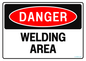 This sign clearly marks the welding area with a bold “Danger” warning, alerting everyone to be cautious and aware of the welding activities taking place.